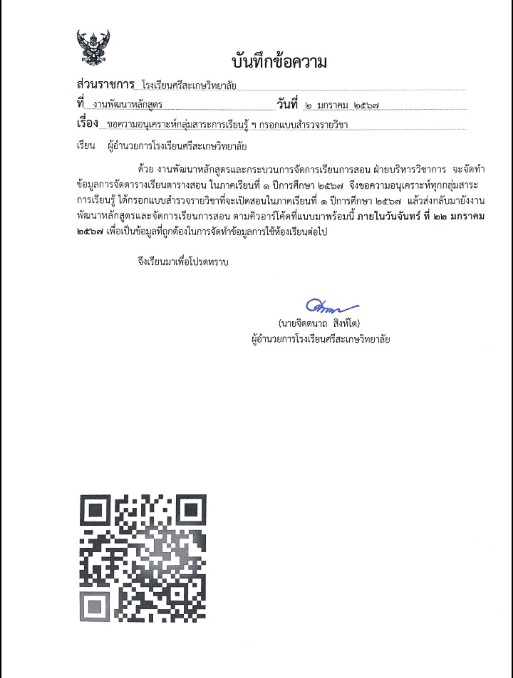 ขอความอนุเคราะห์คุณครูทุกกลุ่มสาระการเรียนรู้ฯ กรอกแบบสำรวจรายวิชา 2567